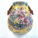 EGG SHAPE JAR 280mm VASE Phoenix & Peonies Flower Pot Pottery Nonya Nyonya Urn