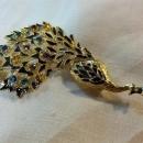 Gold tone & blac enamel Peacock brooch colorful rhinestone pin. No manufacter mark-believe this to be Eisenberg