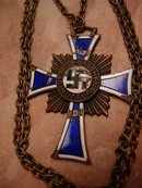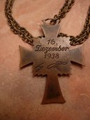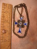 This Vintage Guilloche Cobalt enamel Cross is dated and signed ( I can't make out the signature) and I think it is on its original chain. The crosses were awarded annually on the second Sunday in May (Mothering Sunday or Mother's Day), so despite its institution in 1938, the first awards were rendered in May 1939. The last awards were presented in 1944.[3] This one would have been one of the first. It measures 1 3/4" tall and has some enamel loss. The chain is 22" long. VintageSparkles offers Layaway on all our pieces regardless of which site it comes from. Please remember that vintage & antique items are not mint, nor are they perfect but they sure are full of old history and charm. Please use photos to make your decisions and read our policies prior to buying so you can have an excellent experience with us.