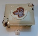 Delightful China Box with dogs decorating the outside. It is in excellent condition with no cracks or chips. It measures 5" x 5" and it is 2" high.