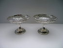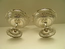 Beautiful pair of English Sterling Silver Pierced Tazzas in excellent condition. They measure 6" in diameter and they are 4 1/8" high. They are Walker Hall and one is Sheffield 1906 and the other is Sheffield 1907.