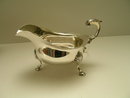 Beautiful English Sterling Silver Sauce Boat in excellent condition. It measures 7 1/2" from handle to lip and 4 1/4" high.