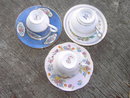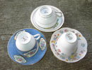 Three teacups & saucer sets England made bone china dishes. Floral flower patterns: Royal Chelsea, E B Foley, Radfords Fenton English manufacturers. Overall nice condition; very small rim nick on Foley cup rim.