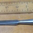 This is a good sharp beveled socket chisel, marked WITHERBY WARRENTED on the steel back. This is a rare sizes under 1/2" being one of the more rare sizes. It is a top quality chisel, excellent steel, holds a sharp edge very well. This one also has plenty of length at 11 inches long. The steel is very clean, no damage, no rust, sharp ready to use. The handle has a good leather capped end with a few dings, but overall solid fitting, solid, no cracks.