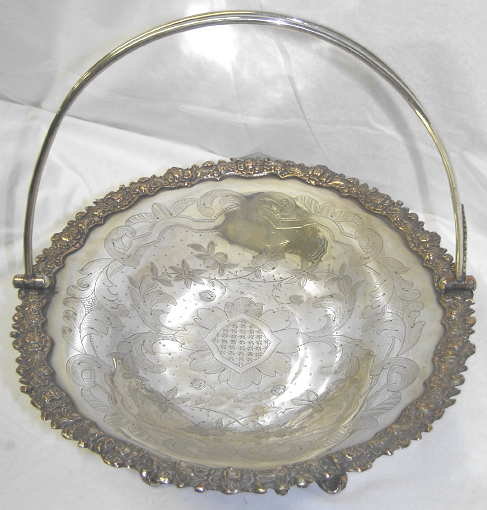 This Sheffield plate handled basket measures 13.75" long by 11.75" wide and 4.5" high at the top of the basket, and 11" high to the top of the handle when upright. Impressed marks are indecipherable. This is likely an example of european " fused plate " (Sheffield plate as called in England). Could be from Norway or Denmark. This item resides on the upper east side of Manhattan in New York city, and may be seen in person by appointment. Thanks for visiting. Please let us know if you have any questions or comments. Additional images forwarded upon request.