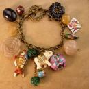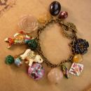 Exotic elephant charm Bracelet - Vintage chunky enamel oriental charm - Asian mythical articulated fish jewelry - goldstone bracelet