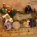 This vintage extra chunky large charm bracelet has everything from a goldstone to an elephant to a reticulated koi fish. It looks as the charms were gradually added . ...Very goth. See photos for size and more views