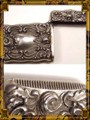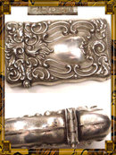 This double sides match safe with striker bottom is so gorgeous and can has now begun to come back with a new purpose. Women are having loops soldered on the tops and are wearing them as pendants that hold dollar bills and coins and pills. What a great idea! And what beautiful pendants these make. This one measures 2 1/2 x 1 1/2 and it is as shiny and rich as sterling. The hinge is very tight so you can put a weighty item inside and it will not open. This is marked silveroid which was mainly used for watch cases. I havent seen many silveroid matchsafes. Silveroid is a special alloy that was developed and was fairly hard wearing and could withstand the rigors of everyday use, It was easy to polish, very hard and looked just like coin silver.