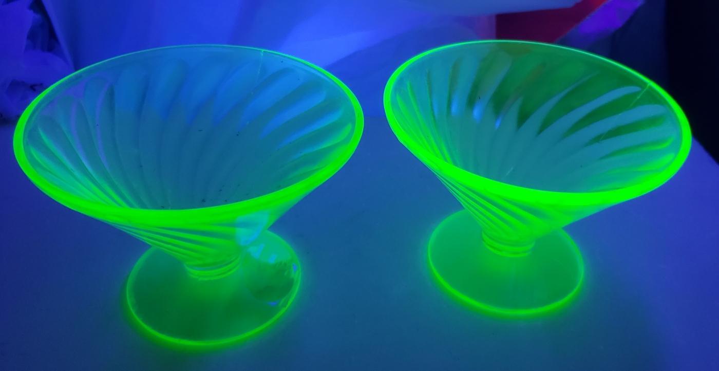 Vintage Federal Diana Sherbet Pair Green Uranium Glow 1937-41