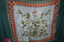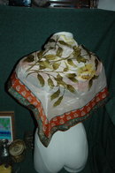 Lovely Elaine Gold scarf with roses. The condition is not perfect. In the border area found a good sized pin hole and another spot that is more less a pull rather a complete hole. The rest of the scarf looks real nice