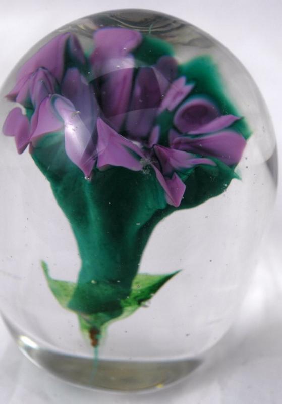 Geoffrey Koslow Flower Paperweight signed GK '09 Green Pink Bud with Controlled Bubble