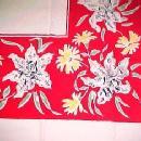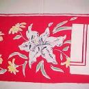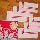Table cloth is 50" X 64" with a nice small sewed edge. There are 6 napkins matching. No holes or tears. Buyer pays S&H. We accept payment from all credit cards via Paypal. You can mail a money order or check to us for payment however shipping will be delayed if payment is made with a personal check.
