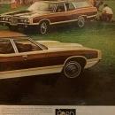 Ford Wagons 1970 Ad. This 2 page color October 9, 1970 ad states When it comes to Wagons, nobody swings like Fords 3 way magic Door gate is the handiest way there is to pack up a wagon and unpack it. Picture shows two Ford LTD country Squire Wagons and a Torino Squire wagon in Stadium Parking lot with people picnicking on ground around them. Magazine tear sheet picture is taken through plastic and may show wrinkles or crookedness that is not in the ad. This original magazine tear sheet measures 9 3/4 inches wide by 13 1/4 inches tall.