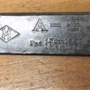 This is a nice clean, adjustable wrench with the "A-8 M M MADE IN USA PAT'D NOV. 13 00 PAT'D MAR 11 02" marks on it. Although the Frank Mossberg Attleboro Mass. mark isn't on this one the A-8 brand, and the double M in diamonds, is The FRANK MOSSBERG CO. logo. This one is 8" long overall. There is a few minor edge dings on the jaws, not bad. The moving jaw thumb screw/knurl is in great shape, works well. No rust, a faily smooth finish, some small dings noted on the handle, not bent or abused. Has about 0-1.6" capacity between the jaws. This longer size is a bit more rare than the smaller bicycle wrenches Mossberg manufactured in the early 1900's!