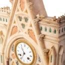 This very unusual and lovely mantel clock is crafted from marble with beautiful inlaid stone and painted decorations. Measures: 21 x 14 x 6 in; 53.3 x 35.5 x 15.2 cm. The dial is signed H. Azur à Paris. Provenance: Purchased from Lennox Money Antiques Ltd. of London on August 5, 1971; estate sale of Nancy Friday. The antique shop of Lennox Money operated from 1964 to 2006 at 88-90 Crawford Street in London.