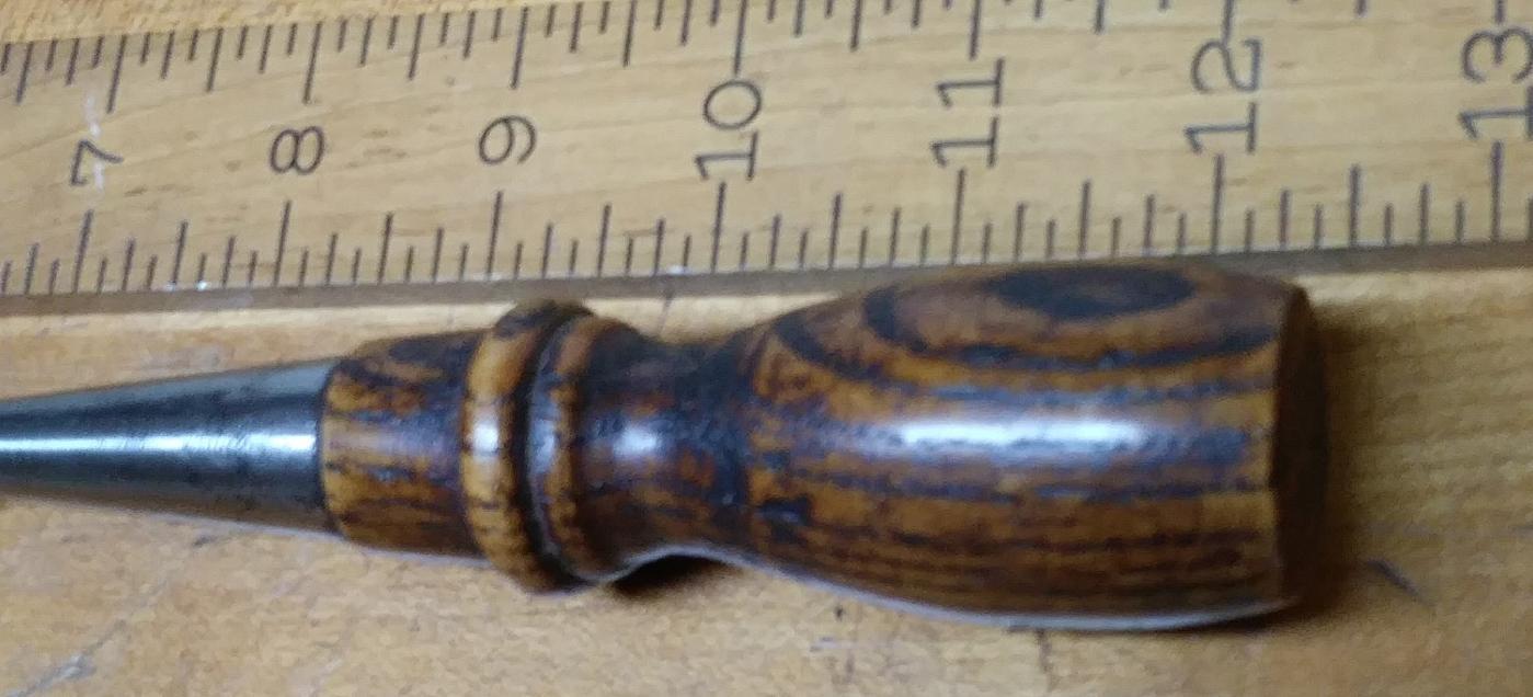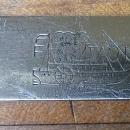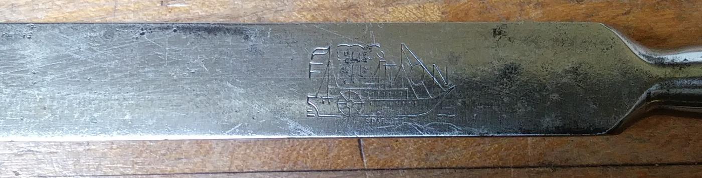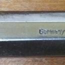 This is a nice clean .62" wide x 12.25" long beveled socket chisel marked "FULTON". The name is inside a sail/paddle wheel ship logo which is usually reserved for Fulton's top quality steel edge tools. Also marked "GERMANY" on the steel. It's in great shape, sharp and ready to use. There is no rust or pitting, very smooth, and polished finish. The hard maple handle has nice grain and turning, is solid with no cracks or damage, very nice shape. A good quality chisel!