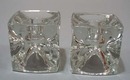 Futuristic Candleholder. This is a cube shape high quality crystal with deep circles on each side. The bottom is ground, these are high quality and could be Fostoria or Heisey. They have a modern design that would have been part of a designer series, not a high production item. 2 x 2 x 2 3/4" Mint condition