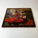 In good condition. With relatively recent professional restoration to the lower left corner, including two canvas patches and inpainting. We have still images and video of the surface taken under UV light that we can forward upon request.