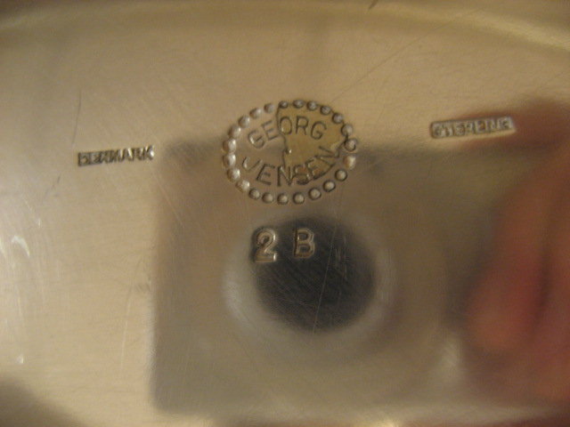 Georg [George] Jensen Blossom pattern # 2B sterling silver hollowware oval serving bowl. This sterling silver server bowl measures approx. 11" in length, 7 3/4" in width, and 2.5" in height. This bowl is in fine original condition with no signs of prior restoration, and has been recently polished. Impressed with authentic "Georg Jensen Denmark Sterling" insignia and marked with the pattern # 2B [Blossom]. Circa 1919. Georg Jensen is one of the greatest silversmiths of all time. Soon after he opened his workshop in 1904 his unique flatware, jewelry and hollow ware became world famous. Today Georg Jensens silver art is just as alive,vibrant, and extremely desirable as when he first designed it.