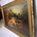 There is scattered craquelure and signs of inpainting in the upper left corner. There are stretcher marks, particularly visible along the top, and the entire left side of the canvas has ripped at the front corner of the stretcher. Surface is abraded in some spots. There is an old patch on the reverse a bit left of center and about one inch across. Relining the entire canvas would be a smart and relatively inexpensive undertaking to enjoy this fine work. We will be happy to arrange such work here in New York prior to shipment at the buyer's expense. Our recommended conservator is Simon Parkes.