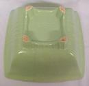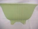 Offering this wonderful large pale green pottery bowl with sleek art deco lined style; sets on four feet with an curved arch in between. Soft matte finish. Perfect green for your shabby chic cottage or arts & crafts style home. Measures 8 x 8 1/2 x 4 1/2 inches, marked USA on bottom, most likely McCoy, but could be Hull or Crooksville; very good condition,no cracks or chips. A beautiful piece for your home and collection!