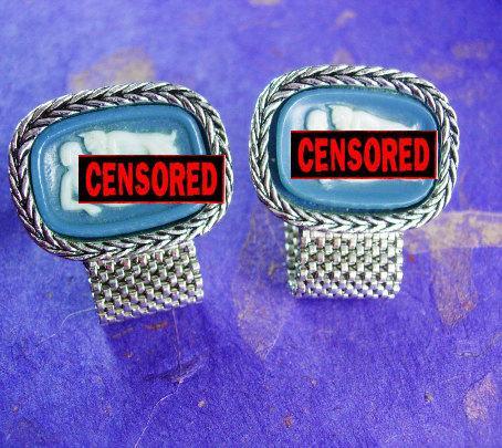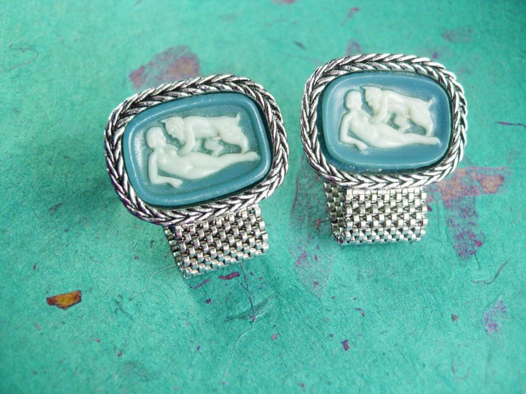 Grotesque Cufflinks Bacchante and Satyr Nude Pan & Lover Incolay Demon Mythical Devil Minotaur mature mesh wrap cameo Dante cuff links