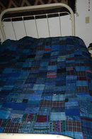 Hand made Guatemalan patchwork quilt of old huipils from the Highlands of Quiche. The colors are mostly blue. It is very lovely and 100% cotton There is a black backing with out any batting so it is more less of a bed spread. The condition is excellent.