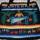 Just your basic Guatemalan Souvenir shopping tote bag. It was purchased in the late 70's from Guatemala. If is made with hand loomed cotton fabric.. Features a Mayan man playing a marimba flanked by two Quetzal Birds. As you can see the word " GUATEMALA" is on the top and there is a row of animals on the bottom. It has a padded quilted lining and zips closed and measures 18" x 18" not including the straps.