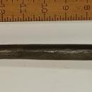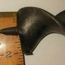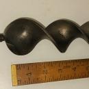 This is a nice 2.10 inch auger bit with a maker's mark on it M C W . This very early sand cast spiral auger bit is in good+ condition. The auger is a Snell Patern double cutting edge and double spur sharp enough to use with a good thread lead screw. This auger was most likely made to fit into some sort of a drilling machine, most likely a hand powered machine of sorts. The end that would fit the machine or the T-handle is about .30 x .70 inch. There is a few casting original imperfections like minor voids in the main shaft diameter, or minor pitting or casting voids in the spiral, but not an issue since this is not near the cutting edges. This auger appears original, over 100 years since it was made. The hardwood has some wood grain separations but very sturdy, over 1.5 inch in diameter. The auger is 22.4 inch long and will make a 2.10 inch diameter hole in wood.