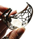The cuff measures 2” from side to side, The opening is 1 3/8”. There is some flexibility to the opening and it does spring back to it's original shape. The widest part to the cuff in front is 1 ¼”. The stone is 7/8” x 1/5”. The stone is very a pretty natural turquoise with some bits of silvery matrix dotted down the center.