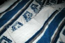 Hand Made Woven 100% Wool Blanket from the high mountain village of Momostenango, Guatemala. This wonderful 100% Wool blanket is a treasure. It measures 86" x 62" with a 5" fringe on each end and is in excellent condition. The colors are a natural tan, blue and gray in a Mayan geometrical pattern with fringe. The blankets are thick soft and incredibly warm to fend off the nighttime cold in the highlands. It is new, never been used and still retains the wonderful aroma of natural lanolin. On my recent trip to the Guatemalan Western Highlands I purchased several of these wonderful blankets directly from the weaver. In Mayan society it is the men who weave the wool blankets. It is a sad fact that they are making less and less hand woven items. As the Mayan culture is becoming "modernized" the old traditions of hand woven textiles of natural fibers is disappearing.\
