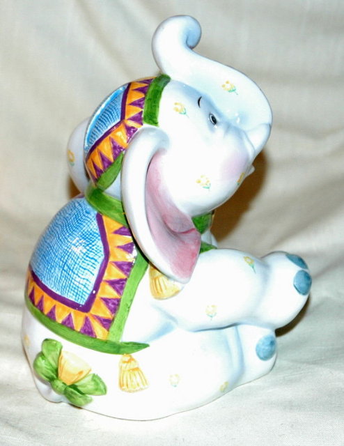 Hand Painted Lefton China Elephant Bank. It measures 6 3/4" tall. The condition is excellent.