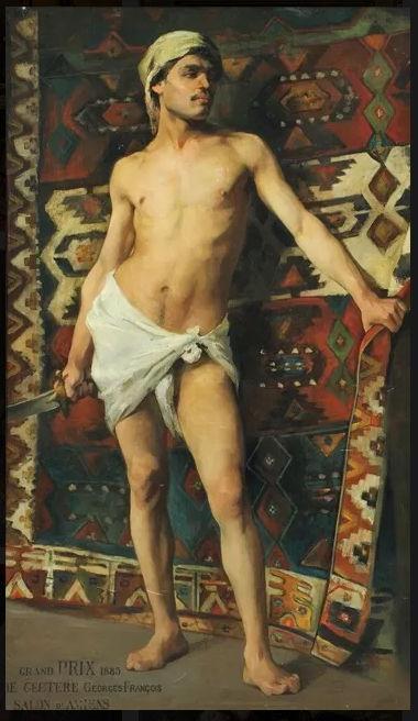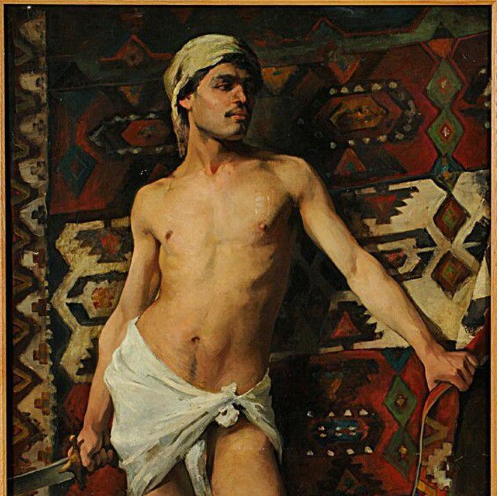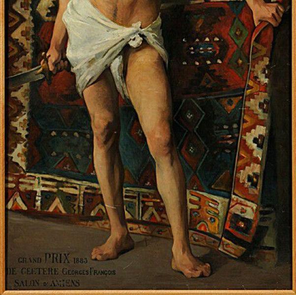 The artist studied at Academie des Beaux-Arts in Brussels and was a member of L'Essor, created in 1876 by a circle of alumni and students of the school and whose motto was "a unique art, one life". The founders were seen as progressive rebeled against bourgeois and conservative literary and artistic circles of Brussels. He was a fine portraitist and also painted other Orientalist themed works. A fine portrait of his resides in the colleciton of the Musee d'Ixelles in Brussels.