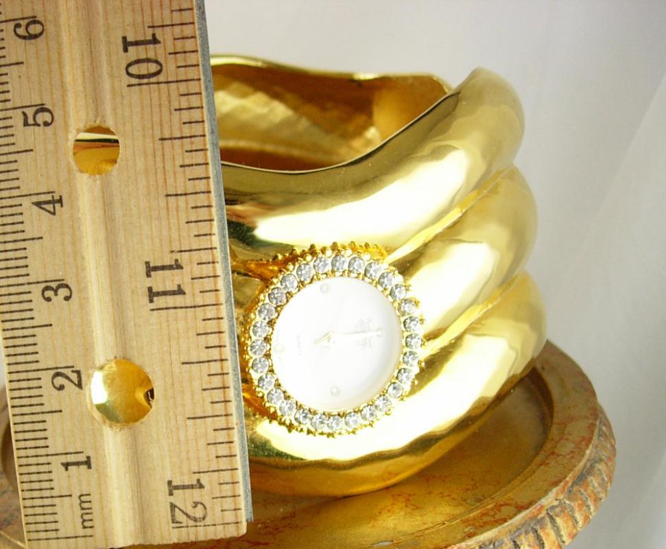 High Fashion Cuff Watch Vintage Art Deco Parklane Quartz Japan Movement Anniversary Wedding. This is a beautiful High Fashion watch. The watch works and only needs a battery. It is very fancy and makes quite a fashion statement. This watch is in good vintage condition, well made and heavy weight. This is a great present for that special anniversary, birthday or wedding.The watch works and we will send it with a new battery. ∆ Condition: Because these are vintage and pre-worn they are not considered new from the factory,please see photos for any wear or there may be light surface scratches that don’t show up unless you hold them to the light. ) .Sold as is and priced accordingly.. dec19 2013