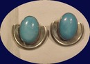 Very large Oval Turquoise Cabochons set in ½ moon shaped sterling setting They are stunning. They stamped on the back with an A© . 925