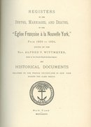Registers of the Births, Marriages, and Deaths of the "Eglise Françoise à la Nouvelle York," from 1688 to 1804 and Historical Documents Relating to the French Protestants in New York During the Same Period Edited by Rev. Alfred V. Wittmeyer. New York. Huguenot Society Of America. 1886. First Edition. Hardcover. Very Good with no dust jacket. Edgewear, spine edges worn. Limited to 500 copies. Collections of the Huguenot Society of America Series. Vol. 1. Black and White Illustrations.