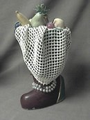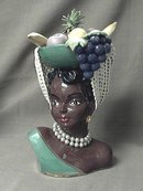 Island Lady with basket of fruit on her head. This a gorgeous piece, maker unknown. Some of the fruit is chipped (see photos). New Price.