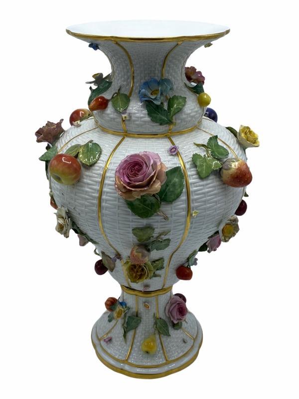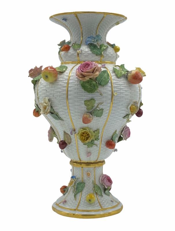 Meissen Fruit and Flower Encrusted Porcelain Vase