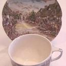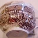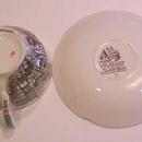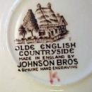 This is a nice Johnson Brothers Old English Countryside Cup and Saucer shows scenes of cottage homes with straw roofs and wonderful landscapes. Shades of brown are the main color for this pattern but here and there you will find an area of blue, pink, yellow or green also. Cup is 2.4"h x 3.6" and the saucer is 5.6". We note two minor lines in the glaze at the top lip of the cup that I can feel, but not cracked or chipped, otherwise very good condition.