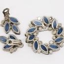 Juliana D&E Blue Rhinestone Wreath Brooch & Clip Earrings