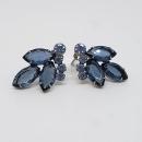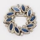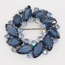 Juliana D&E 2" wreath circle brooch and matching clip earrings. The wreath measures 2" across, with a circle of dark blue open back navettes, and a ring of light blue closed rhinestones and some spaced between the dark stones on the outside. It has the pin stop typical of Juliana brooches. The matching earrings have the figure 8 puddling which Juliana is also known for. All stones are original and in great shape, and all prongs are there. This set is in great condition and looks unused. It is listed as #6629 in the Is It Juliana Jewelry database.