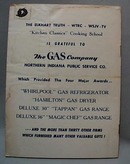 Kitchen Classics Cook book compliments of the Elkhart Truth, Channel 28 & WTRC provided by the National Live stock & Meat board for a cooking class. I am not sure of age, but looks to be 1960 era. Soil on back cover & someone has penciled in the days they were cooking all of the neat recipes, otherwise great condition. 5x7" 39 pages