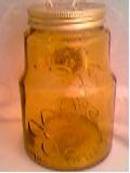 This shaker is not only decorative, it is quite functional as well. The raised writing on the front says "Grandms'a Special Spice". The bottom has the maker and country of origin on it. It also has a date of 1970. It also has the original store price tag on the bottom. The tag is from Walter Jennings/Denison. (Texas) This was an old dry goods type store that is no longer in business. The lid appears to be original, but hat a dent on the edge. The jar itself is in excellent condition. It measures aprox. 5" H.X3" across the bottom. There is another identical shaker on my site, except for the color. It is a beautiful green. The shipping fees quoted are for priority/No insurance in USA only.