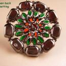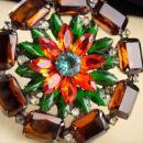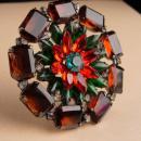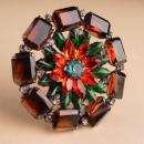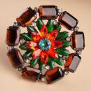 Large 3" Vintage flower Brooch - open back rhinestones - orange green - marquise cluster statement pin - gift for mom - Big faux amber pin
