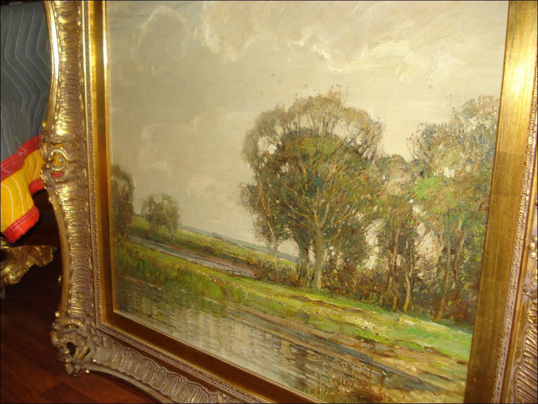Large oil on canvas signed Kershaw Schofield, British, 1872-1941, "Landscape" in wonderful original frame. This is an exceptional work by a listed British artist.