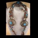 Large heavy Vintage Etruscan Belt - Tribal kuchi medallion belt - Afghan ceremonial belt - Turquoise coral jewelry - India tribal belt