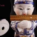 If you want the perfect housewarming or new business gift then this statue of good luck and prosperity is it. This is a huge porcelain hand painted boy and his name is Yunu and he was an apprentice of the Taoist Immortals. He was helpful to their servants, represented purity and good fortune and luck. I am serious about the large size of these so be ready to be impressed. See photos for more views and details,