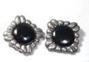 The center is a round black onyx cabochon that sits the retro moderne square setting. This earring are from the 1970's as the markings on the back indicate. The style is more of a 1930's 1940's . Aside from the details they rock.