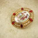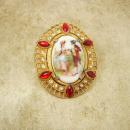 Large Vintage jeweled Victorian fur clip Portrait with red rhinestones dress clip