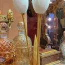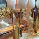 Our client’s pair of tulip form table lamps by Albert Cheuret (1884-1966), crafted from gilt bronze with hand carved alabaster stone stone shades. 14 3/4 inches tall with modern sockets amd wiring, ready for use.